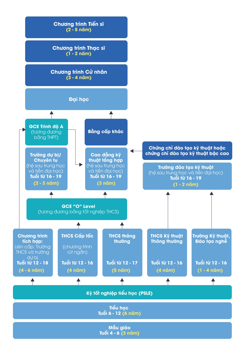 Cơ cấu giáo dục tại Singapore. Nguồn: NCEE. |