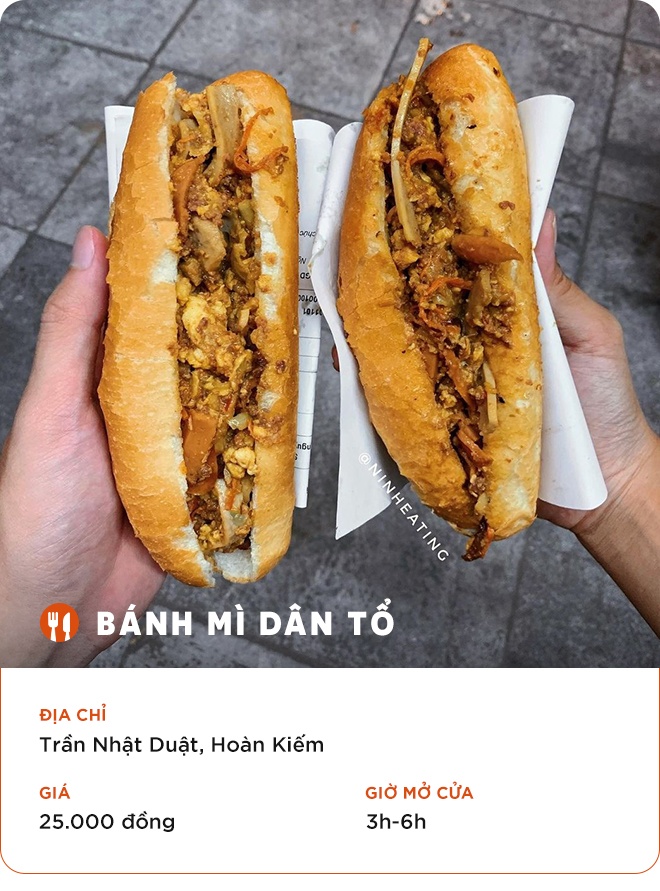 Tung: "Tầm 2h- 2h30 khách bắt đầu đông, bạn nên chuẩn bị đi sớm vì sẽ phải xếp hàng lấy số thứ tự. Bánh mì không quá xuất sắc, chỉ để thoả mãn cơn đói của dân tổ nói riêng cũng như người trải nghiệm như mình. Mình ăn 4 miếng hết luôn cái bánh. Ai mà muốn no là phải mua 3 cái mới đã. Nói chung đây là điểm đến đáng để đi với bạn bè khi phượt đêm, nói chuyện cũng như giải ngố xung quanh khu vực phố cổ - Long Biên".