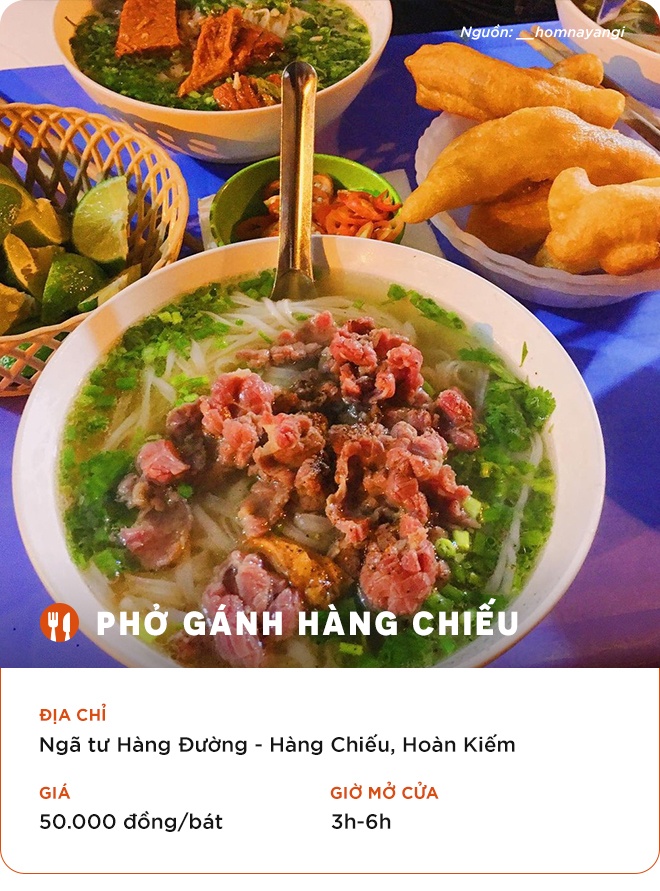 Trương Lê Na: "Hàng phở gánh duy nhất còn sót lại ở Hà Nội. Hương vị phở xưa. Thực đơn có món phở bò tái, chín, sốt vang .Quán chỉ mở 3h30-6h30, vì khách đông nên phải chờ lâu, cô chủ cũng hay nhăn nhó, lớn tiếng, nhưng thông cảm cho người ta mà bỏ qua thì vẫn ổn. Phở ngon, ăn với quẩy rất hợp".