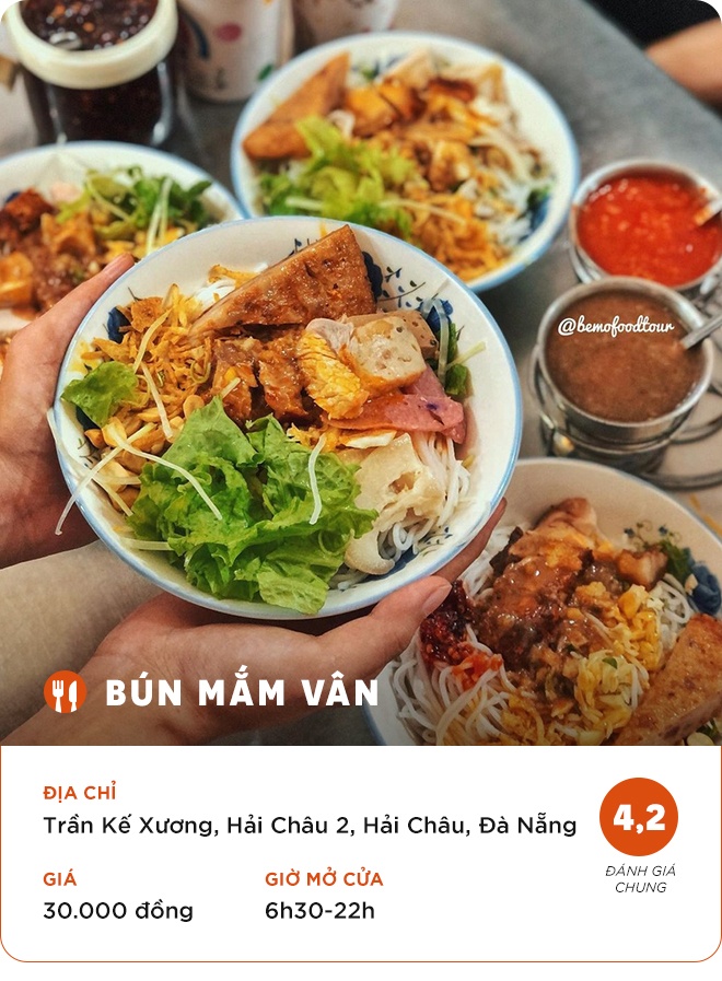 Chú Gấu Nước: "Quán bình dân, có mức giá tầm 30.000 đồng cho một tô bún. Không gian thoáng, sạch sẽ. Các loại bún mắm cũng đa dạng, như bún mắm thịt heo quay, bún mắm nem, bún mắm thịt luộc, bánh đập... Quán nằm ở hẻm bún mắm của Đà Nẵng".
