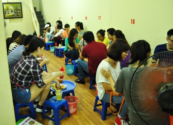 | Nhờ món lạ, hấp dẫn, quán bánh tráng nướng đã thành tụ điểm ăn uống hot của khu phố cổ. |