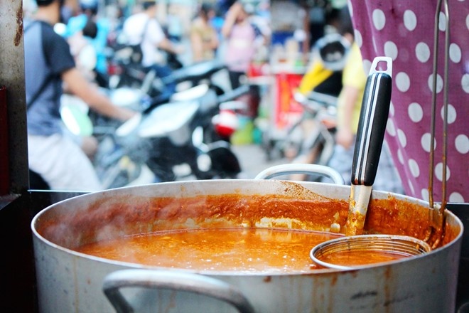 8. Há cảo, phá lấu Bò Marie Curie: Phá lấu chế biến vừa miệng. Ăn kèm bánh mì hay mì tôm đều ổn. Điểm trừ là người bán vẫn phục vụ hơi chậm.