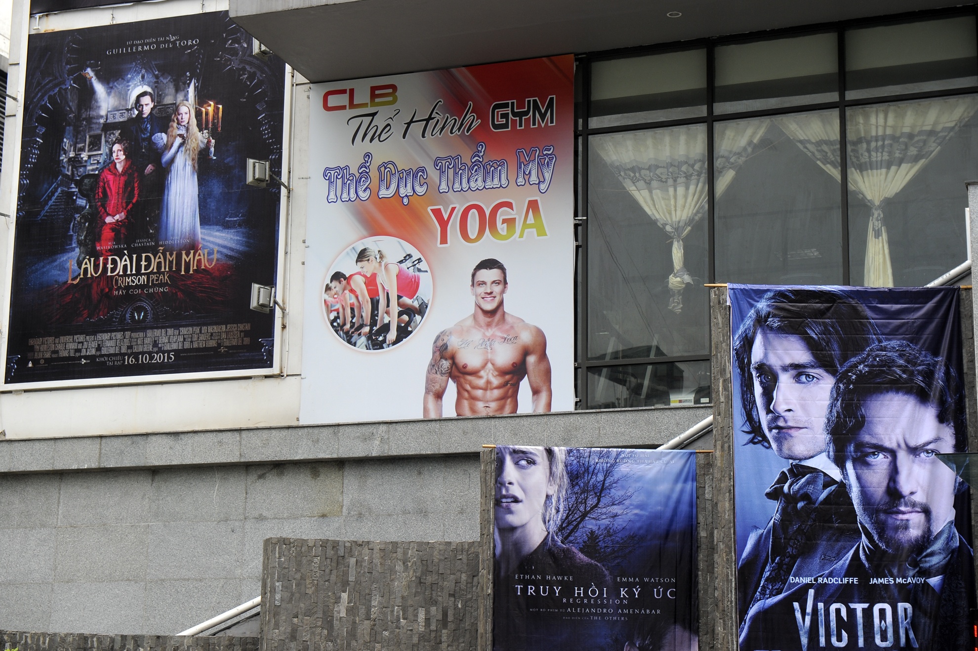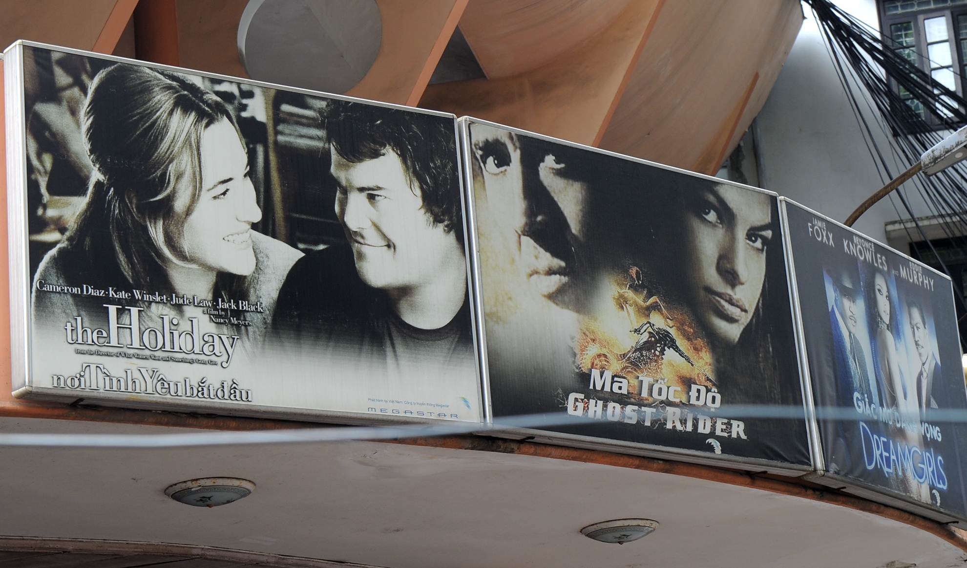 | Poster của những bộ phim ra đời từ năm 2007 như The Holiday, Ghost Rider... đã bạc màu theo thời gian vẫn còn treo nguyên trên mặt tiền của rạp. |