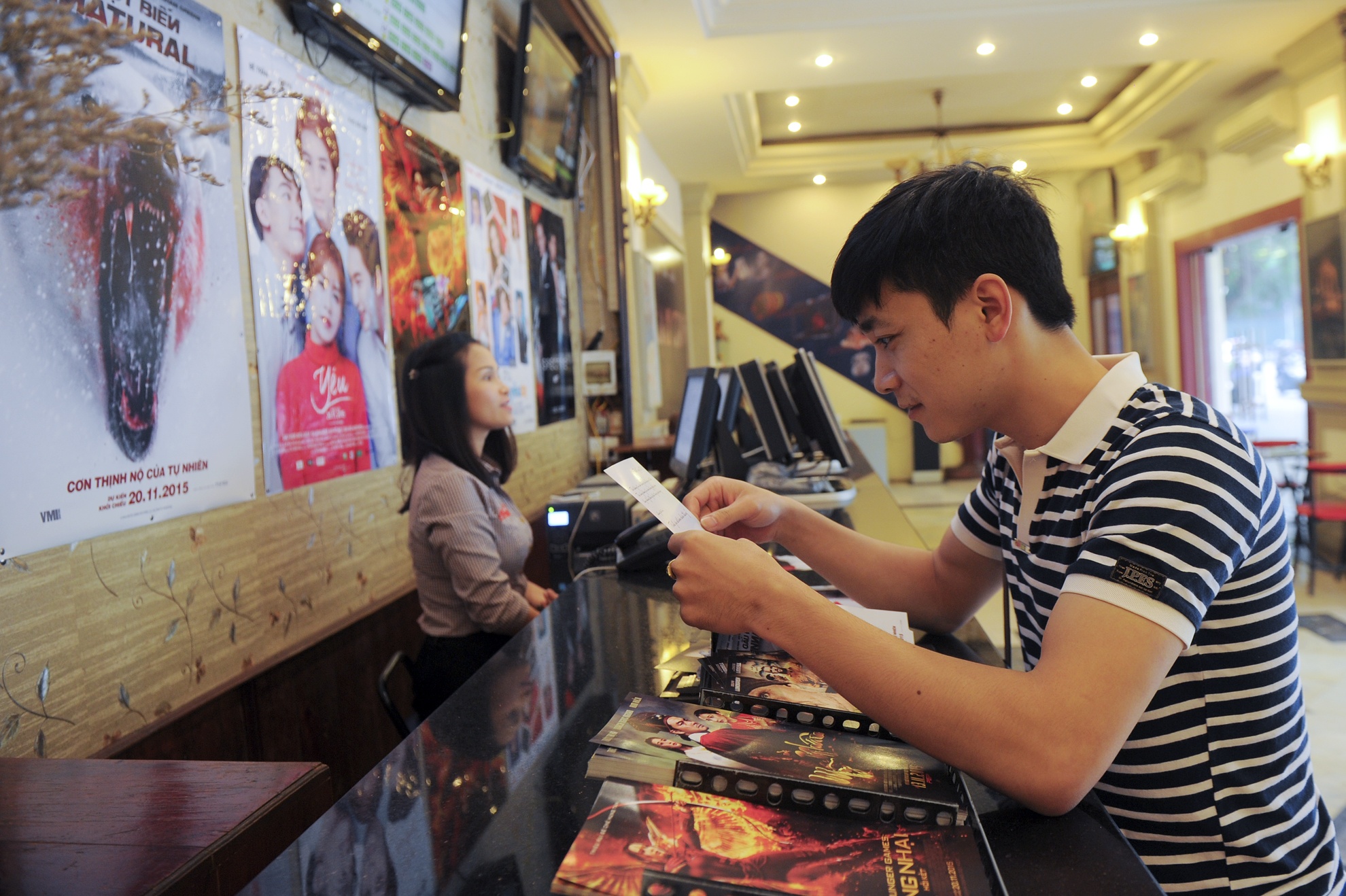 | Anh Bùi Viết Phong (ở Ngã Tư Sở) cùng bạn tìm đến rạp Tháng Tám để tìm xem phim Riot mà anh yêu thích chứ không phải vì thói quen xem phim tại đây. |
