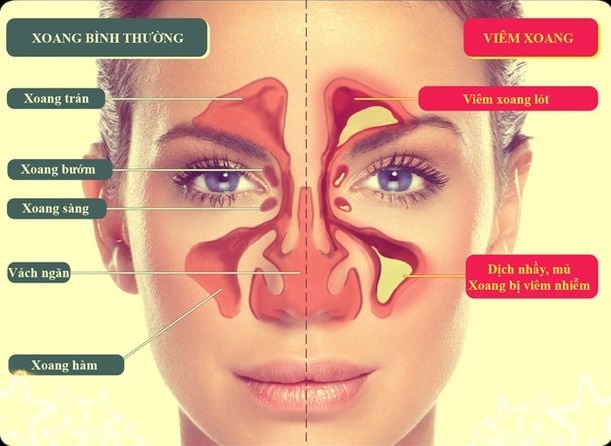 Sự khác nhau giữa xoang bình thường và viêm xoang. |