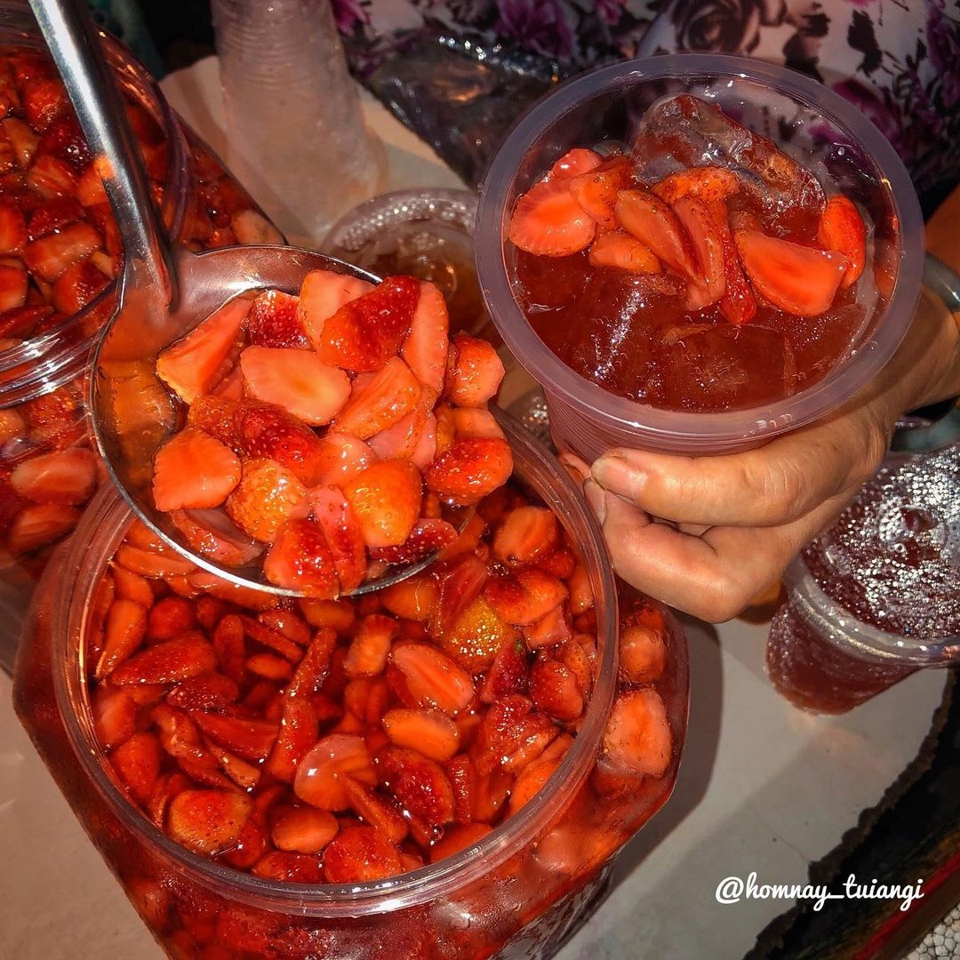 Trà dâu online là địa chỉ được người sành ăn gợi ý nên thưởng thức ở TP.HCM. Quán chủ yếu phục vụ thực khách mang về, nên không gian giới hạn. Đến đây, bạn có thể thưởng thức trà dâu, xoài, thơm với kích thước khác nhau. Tuy nhiên, trà dâu của quán vẫn là món best seller bạn nên thử.