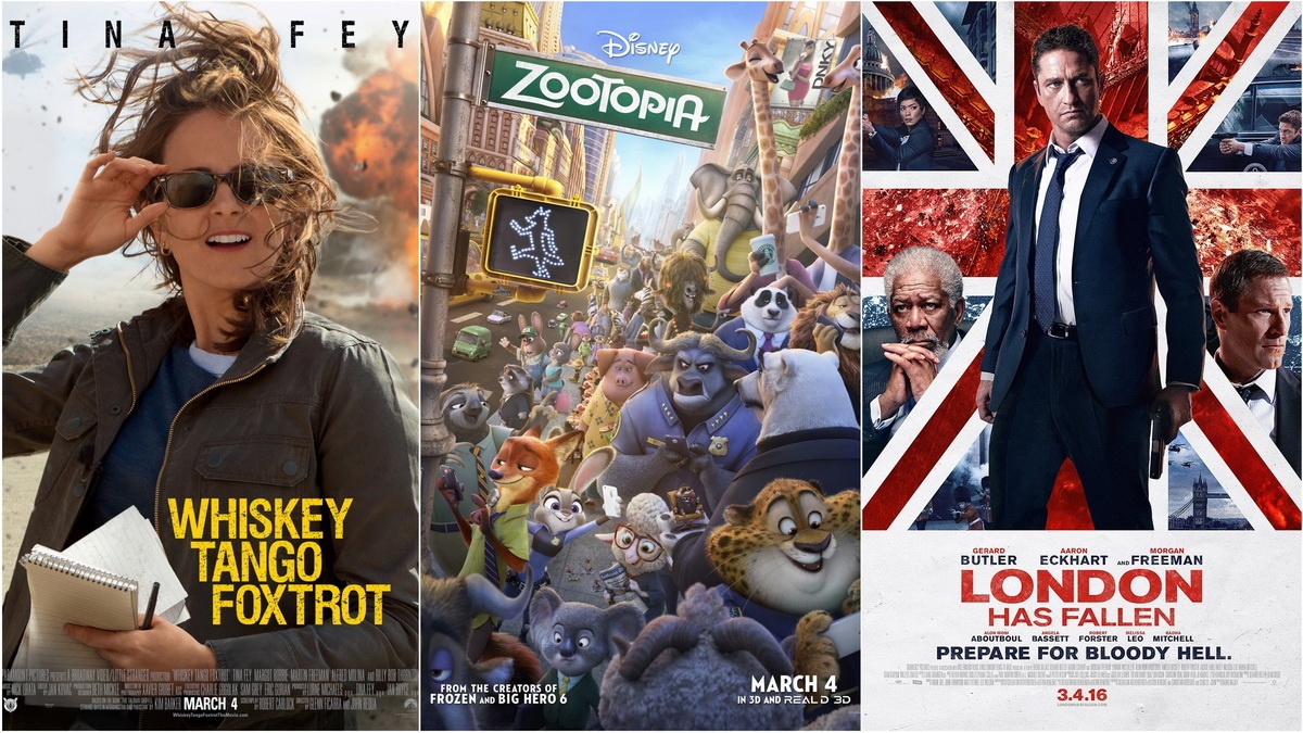 Cuối tuần này, Zootopia mới chính thức ra rạp tại thị trường Bắc Mỹ, sau khi đã chu du tới một số quốc gia trên thế giới như Việt Nam. Ngoài ra, hai bộ phim mới khác cũng ra rạp là Whiskey Tango Foxtrot của Tina Fey và London Has Fallen - phần tiếp theo của Olympus Has Fallen (2013).