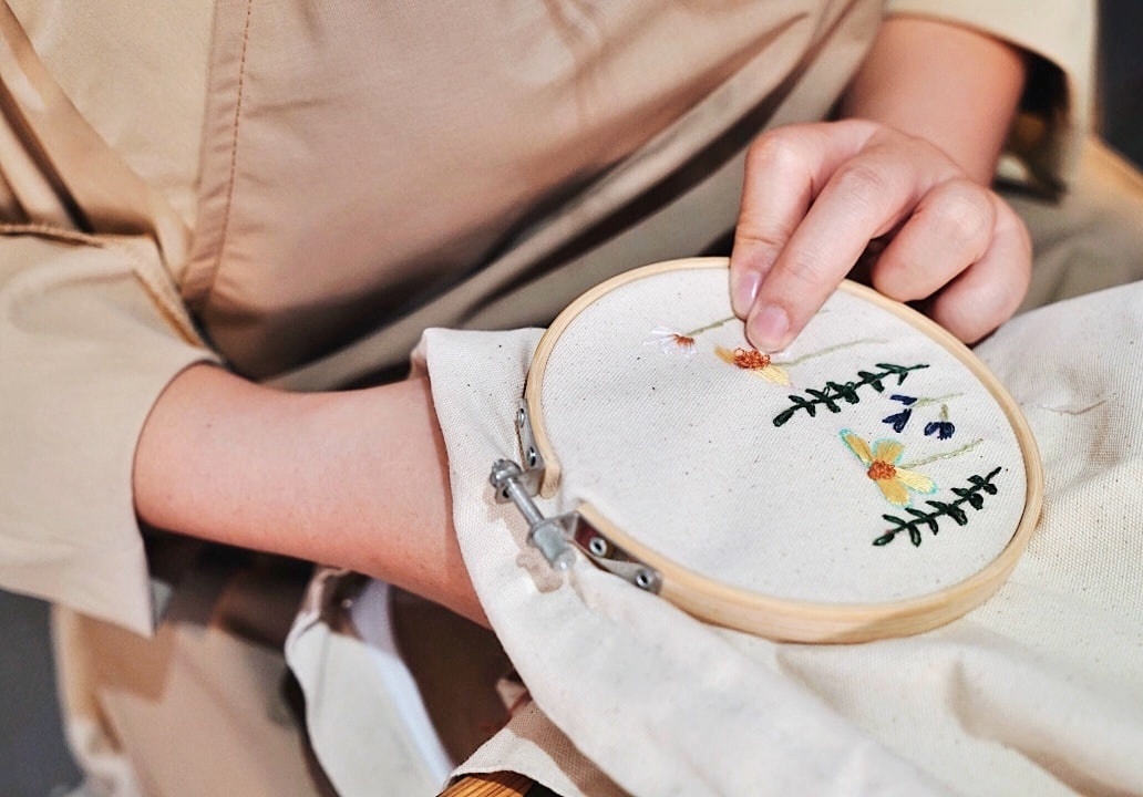 Nếu bạn là người yêu hình thức nghệ thuật thủ công trang trí trên mặt vải bằng sợi chỉ và mũi kim, workshop "Thêu trên túi tote" diễn ra lúc 14-16h chủ nhật tuần này là gợi ý phù hợp để tham gia.