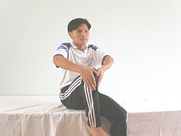Hai tay để lên gối, xoa từ trên xuống dưới của phía trước đùi và cẳng chân tới mắt cá, trong lúc chân dần dần giơ cao.