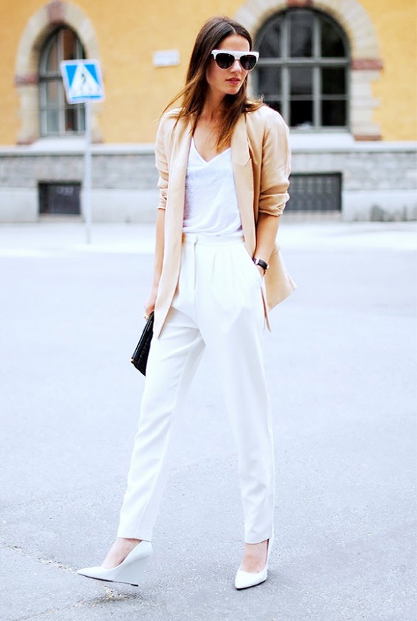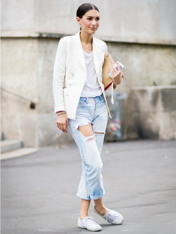 | Blazer trắng luôn mang lại sự trẻ trung, đặc biệt khi kết hợp cùng giày sneakers. |