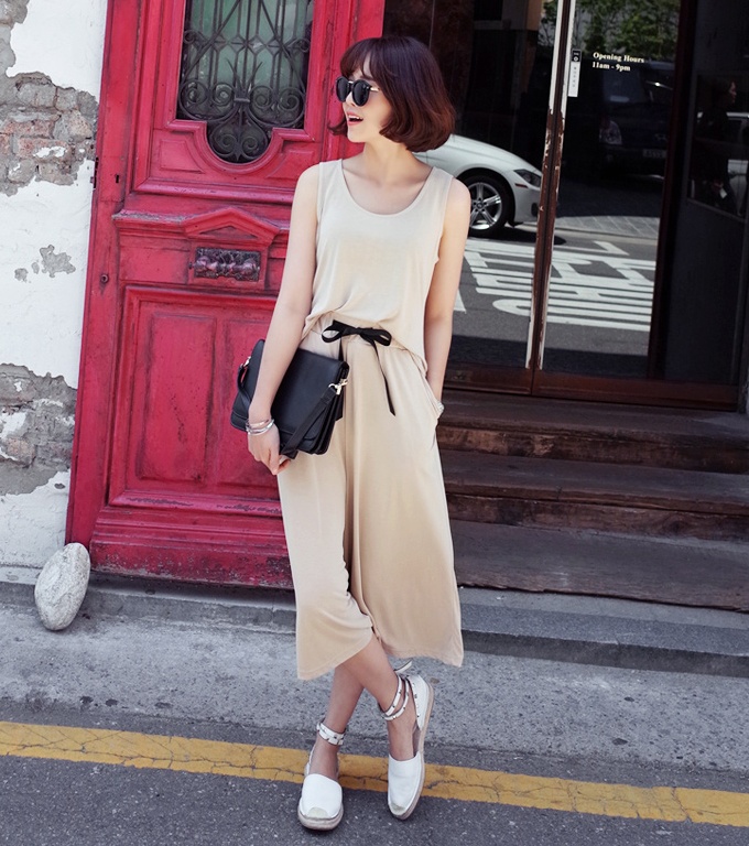 3. Sử dụng màu sắc đồng bộ: Cách mặc trang phục đồng bộ với quần culottes sẽ giấu đi cảm giác phân chia cơ thể, vì thế tạo cảm giác cao ráo hơn.