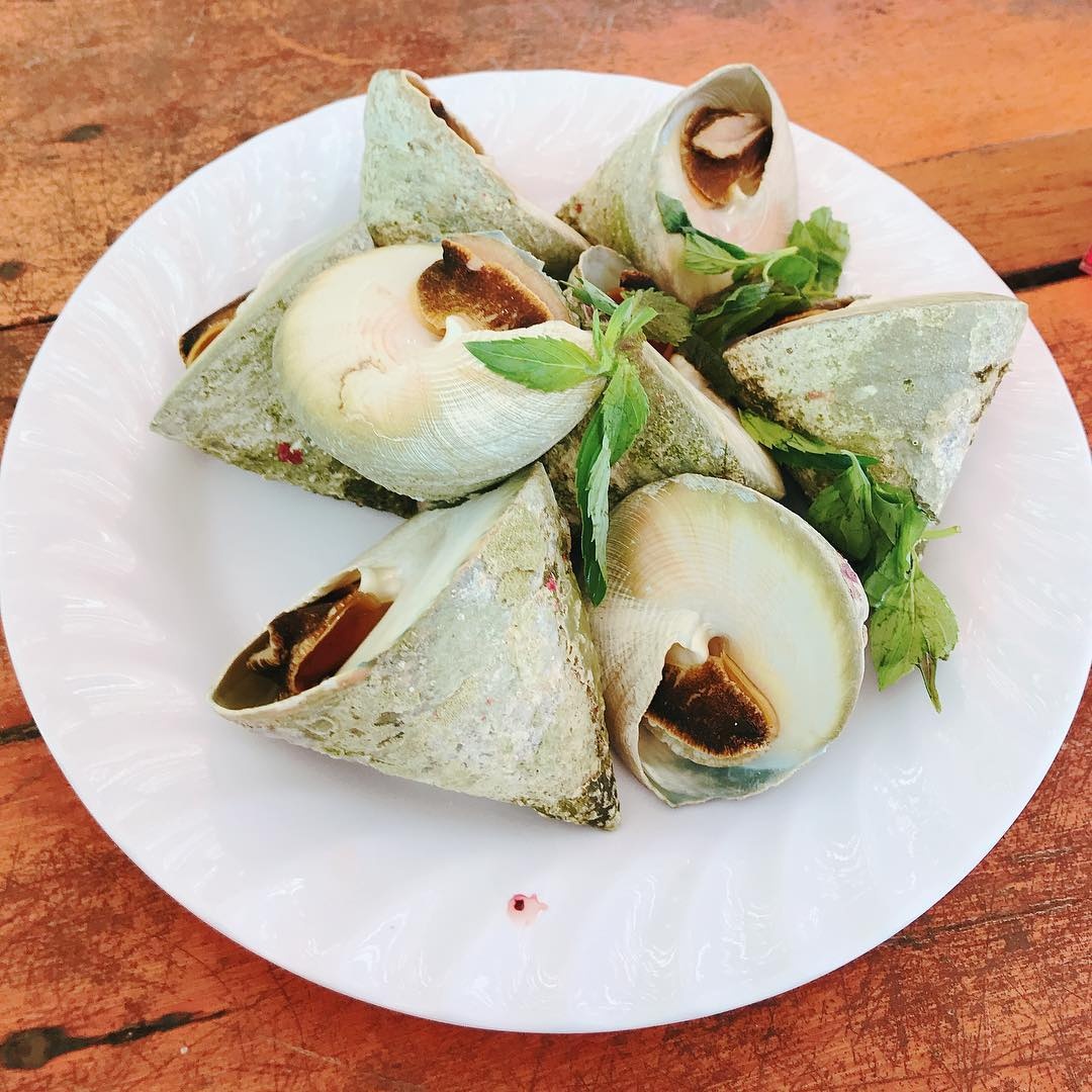 Ốc len thường to cỡ ngón tay trỏ, có màu nâu đậm xen lẫn vân trắng. Vỏ ốc len khá cứng, hơi thuôn dài, nổi nhiều đường gân nhỏ xoay quanh. Nguyên liệu này thường được chế biến thành món ốc len xào dừa hấp dẫn, nổi bật vị nước cốt dừa béo ngậy. Ảnh: Kaiwaii.food. |