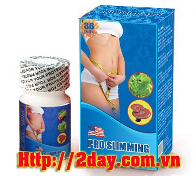 Viên giảm cân Pro Slimming được nhập khẩu từ Mỹ với chiết xuất từ nấm linh chi, lá trà xanh, nụ hoa hòe và tinh chất sữa ong chúa giúp bạn giảm ít nhất 3-5kg, phổ thông 5-12kg trong 1 tháng. Sản phẩm tác động nhanh chóng lên những vùng nhiều mỡ nhất trên cơ thể, phân hủy và loại bỏ ngay ra khỏi cơ thể mà không hề có bất kỳ tác dụng phụ nào.