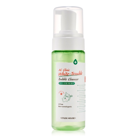 Dòng sản phẩm AC Clinic lại bao gồm nhiều sản phẩm. Đầu tiên là sữa rửa mặt AC Clinic White Trouble Bubble Cleanser giúp làm sạch mọi bụi bẩn trên da, cho cảm giác mềm mịn, giảm mụn hiệu quả và có thể dùng để tẩy trang. Sản phẩm làm từ công thức axit salicylic và triclosan có tác dụng khử trùng, chống khuẩn hiệu quả kèm tinh dầu đàn hương thiên nhiên giúp bảo vệ và duy trì độ ẩm cho da.