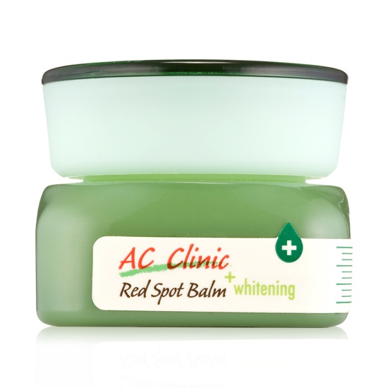 Cũng nằm trong dòng sản phẩm AC Clinic là kem giúp mụn mau lành và không để lại sẹo thâm lâu Red Spot Balm (loại làm trắng). Sản phẩm chứa Madecassoside (thành phần làm lành sẹo nhanh, giảm sưng tấy) và chiết xuất từ hành giúp màu sắc của những vùng da bị mụn nhanh chóng trở nên bình thường.