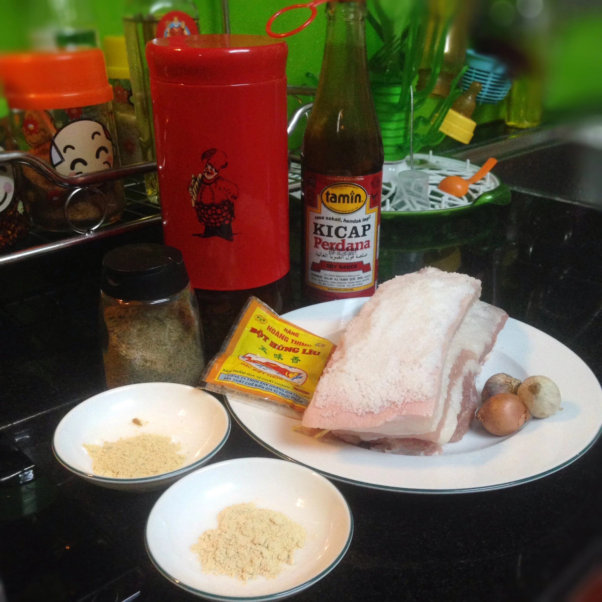 | Nguyên liệu làm món heo quay da giòn. |