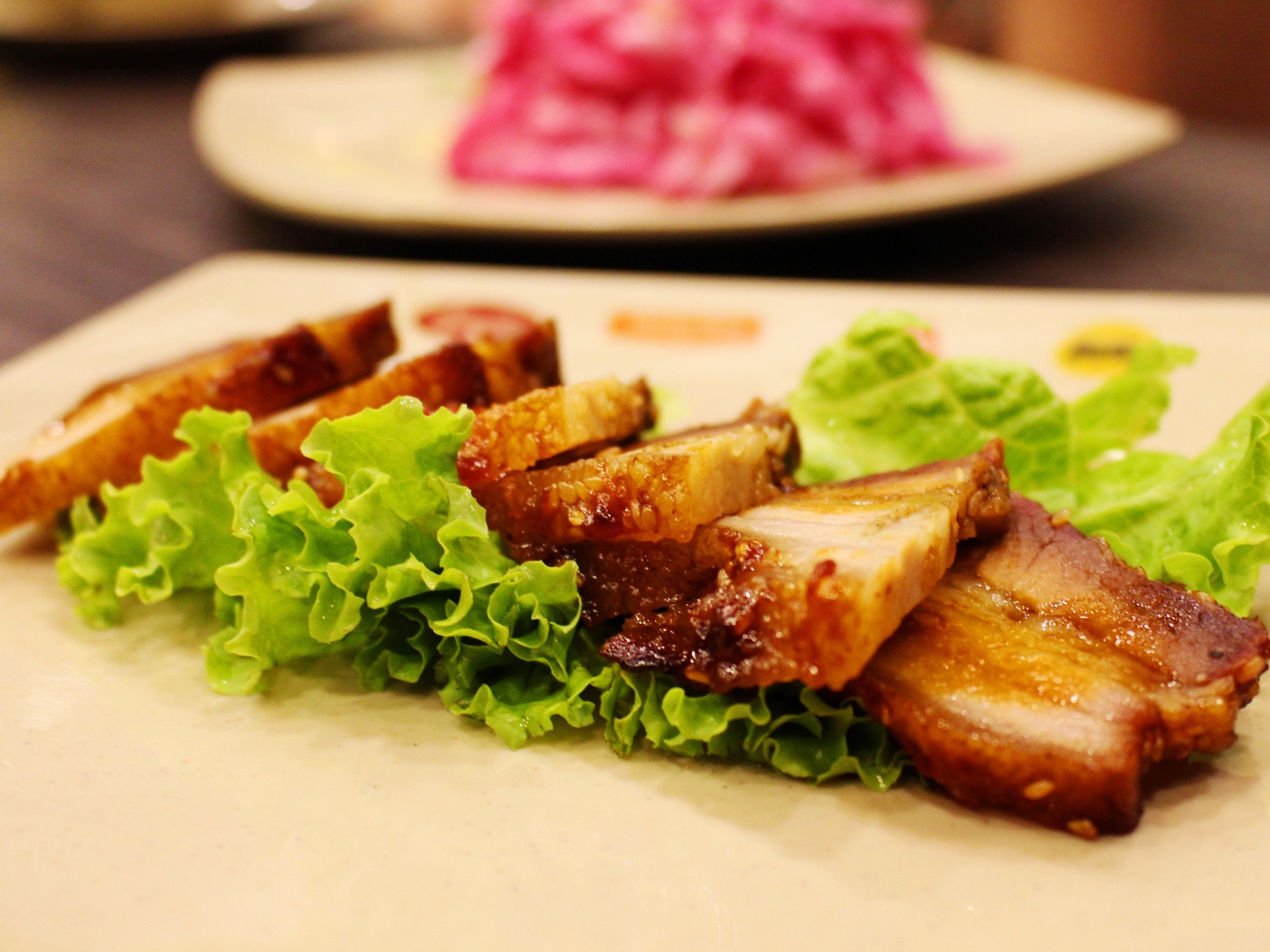Thịt heo quay da giòn có thể ăn cùng cơm hay bánh mì. |
