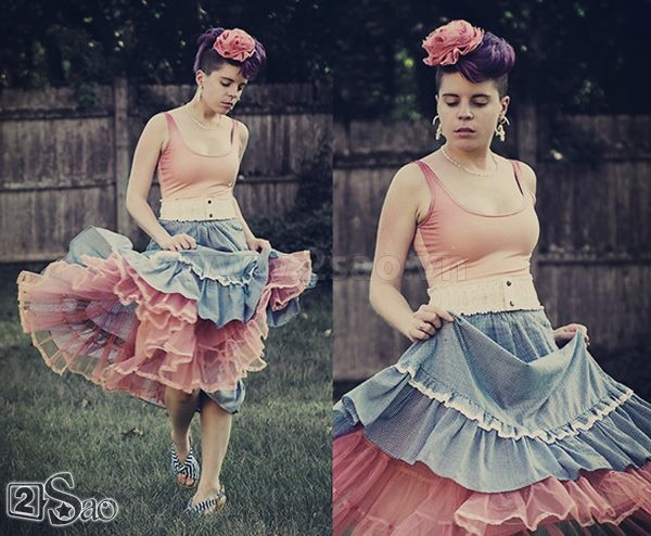 | Chiếc áo của cô gái này như bao tải với chất liệu chống thấm. Trong khi đó, chiếc váy dài quét đất chẳng khác giẻ lau nhà quấn vội. |