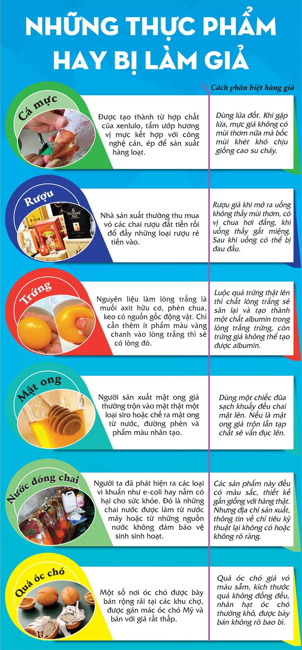 Hiện nay, thị trường xuất hiện thực phẩm bị làm giả một cách tinh vi. Dưới đây là một số thực phẩm tiêu biểu.