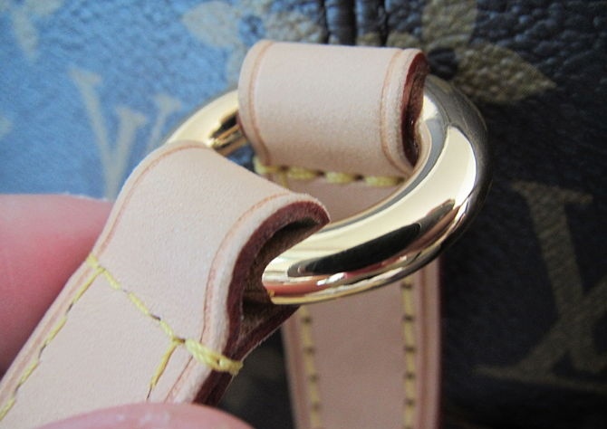 Phần quai xách của túi: Chất da bò tự nhiên không cần tới lớp nhựa bọc bảo vệ, trong khi túi giả thì cần tới chi tiết này.