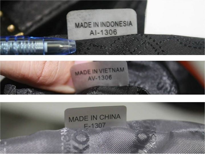 | Hình tag bên trong túi sẽ có ghi nơi sản xuất, ngày sản xuất và dòng túi. |