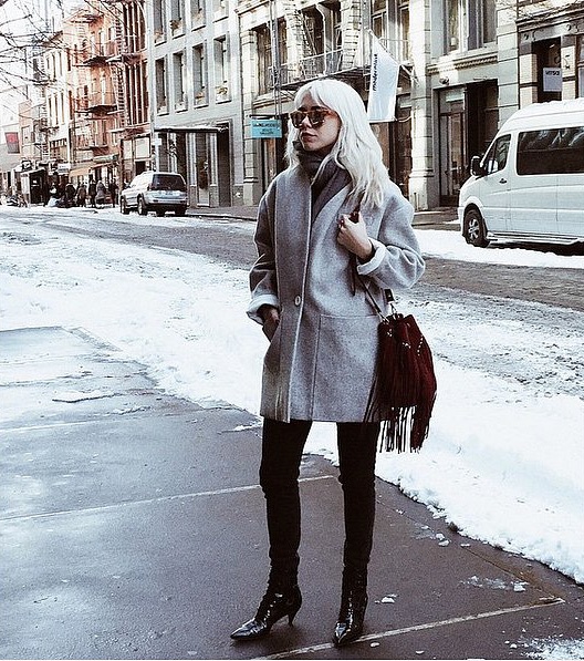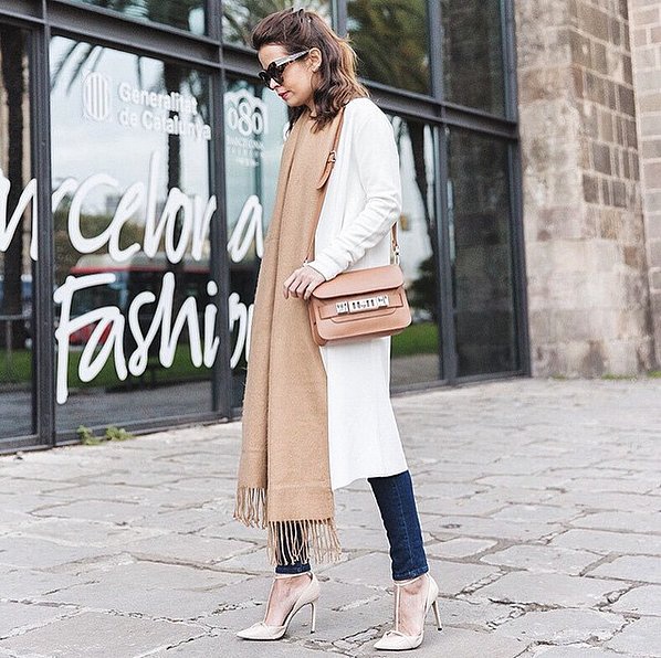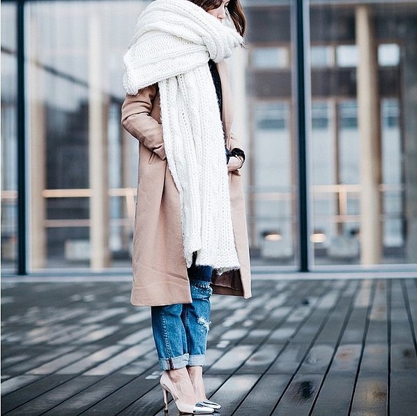| Bạn có thể buông thả chiếc khăn ấm áp của mình quá đầu gối, nhưng đừng quên đi giày cao gót để kéo dài chiều cao lên. |