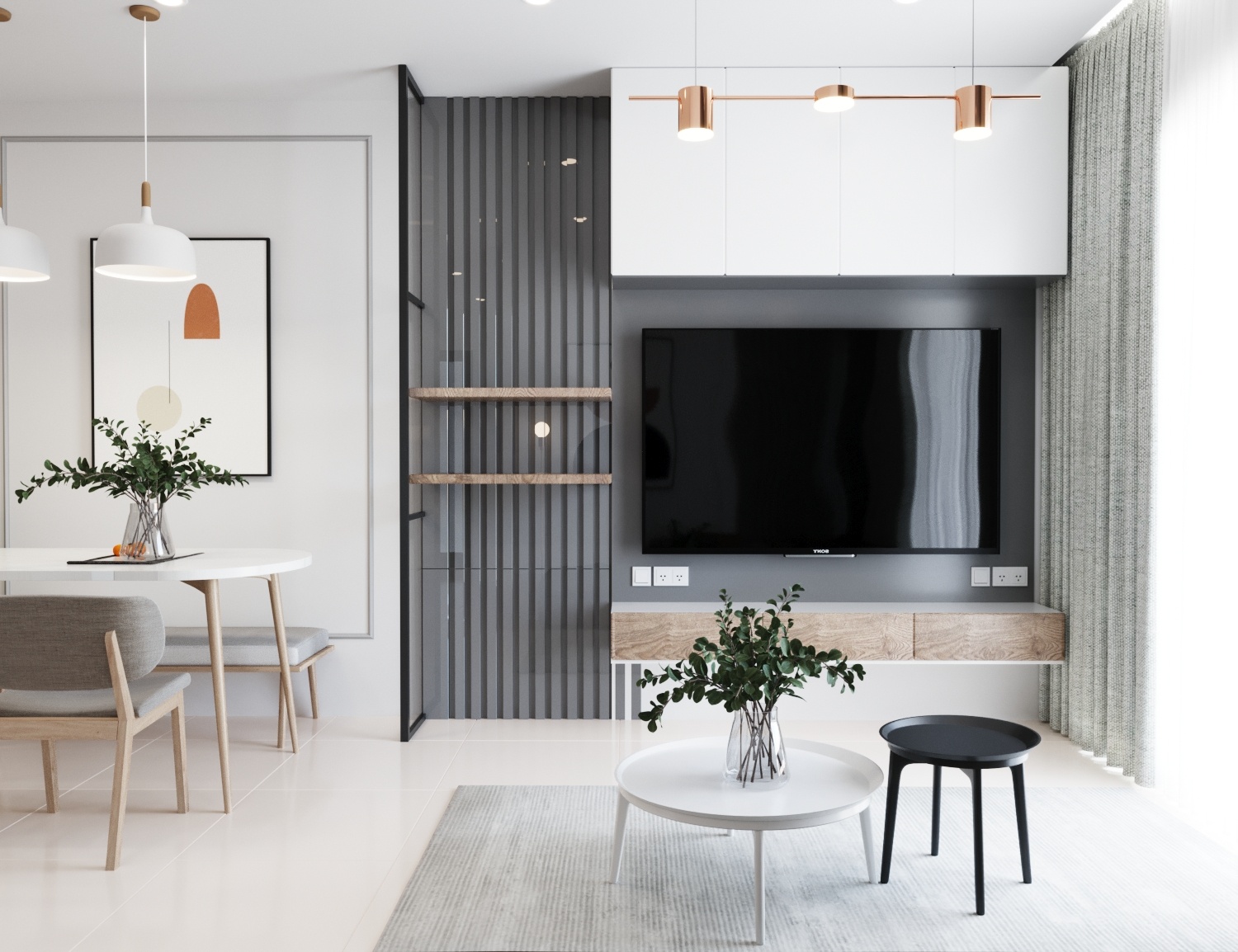Trang trí tường một cách khéo léo là một trong những yếu tố góp phần làm không gian rộng hơn, theo Phương Trinh.