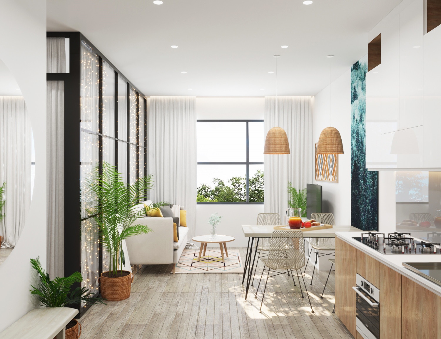 - Ưu tiên ánh sáng tự nhiên. Nếu nhà nhỏ thiếu sáng, cần thêm đèn thả, đèn led phù hợp