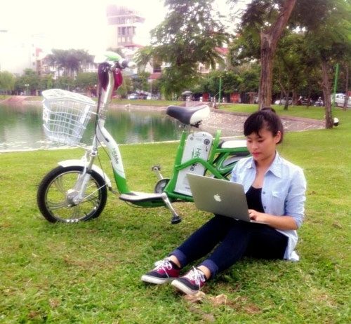 | Xe đạp điện HKbike được học sinh yêu thích. |