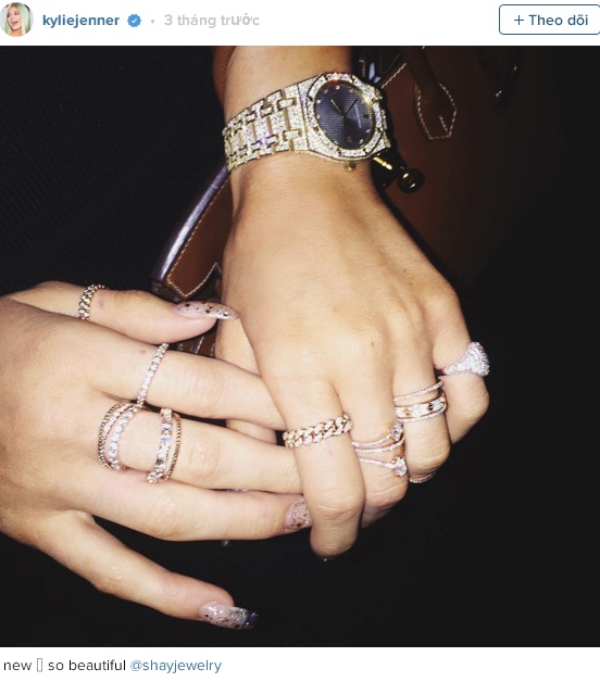 | 9. Nữ trang ($7140): Kylie mê kim cương và thích đeo thật nhiều để trang điểm cho đôi bàn tay. Sản phẩm cô thường sử dụng đến từ thương hiệu đắt giá Shay Fine Jewelry. |
