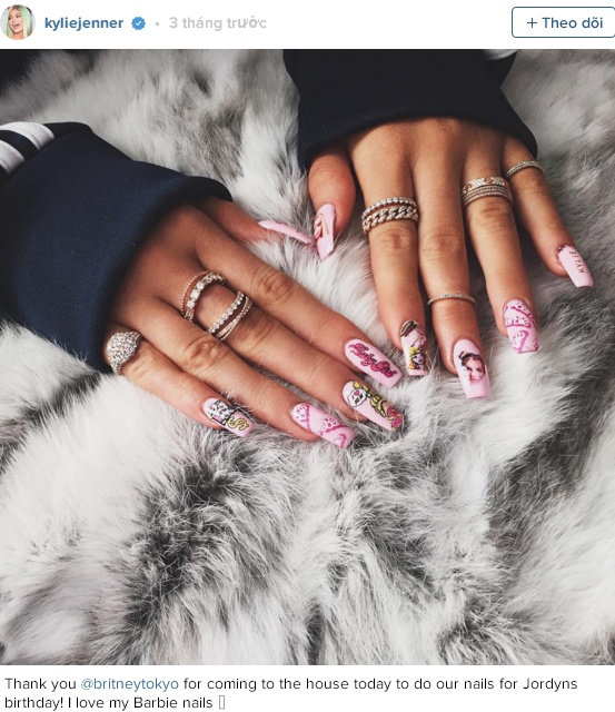 | 3. Sơn móng tay ($175): Kylie thích các họa tiết vui nhộn trên móng tay, giá của một lần gọi thợ Britney Toykyo tới nhà để làm móng là $125 cộng với chi phí đi lại là $50. |