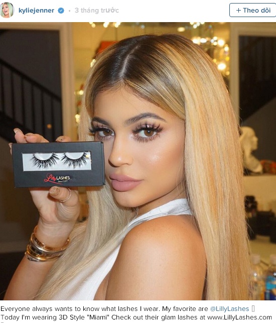 | 8. Lông mi giả ($30): Sở thích của Kylie là cặp mi dày, cong vút, vì thế cô thường dùng bộ mi giả của hãng Lilly Lashes có giá không hề rẻ. |