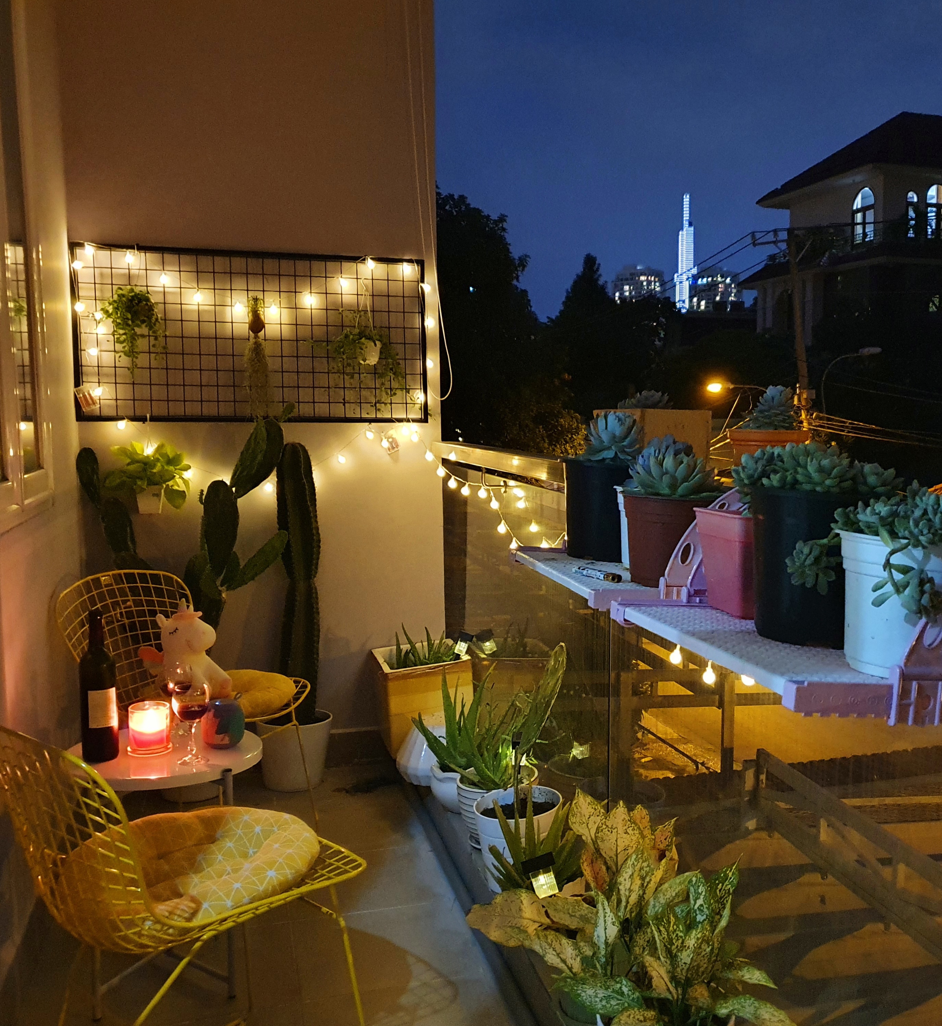 Xuất phát từ sở thích với xương rồng và sen đá nên tôi hướng đến concept gần gũi với thiên nhiên. Ban công có diện tích nhỏ nên tôi chỉ mất 1 tuần cho quá trình nâng cấp này.