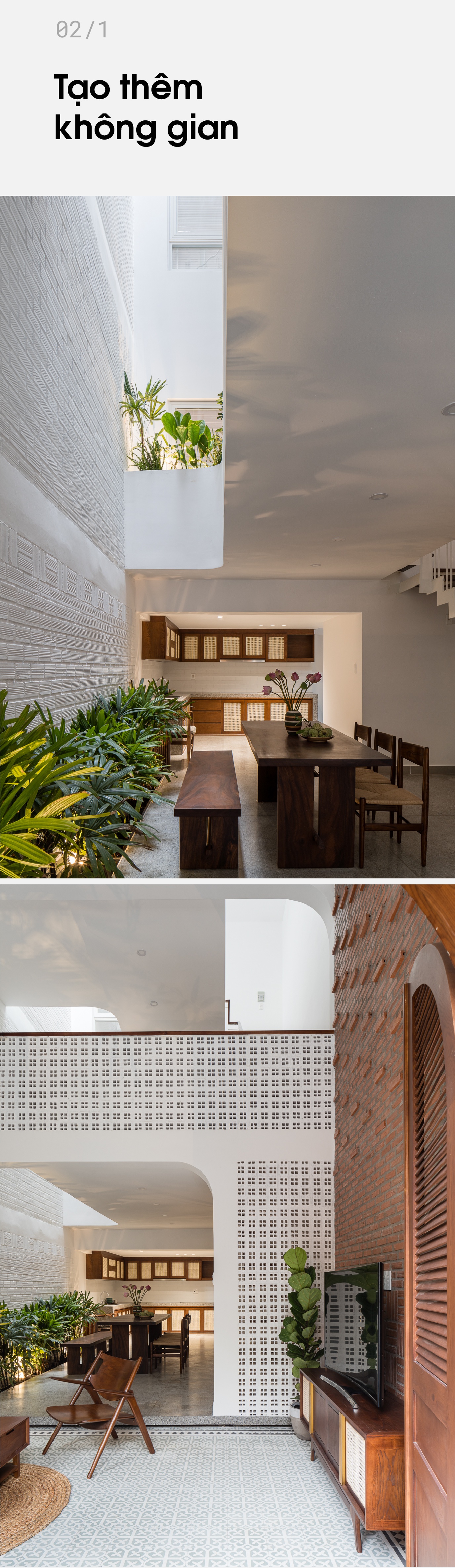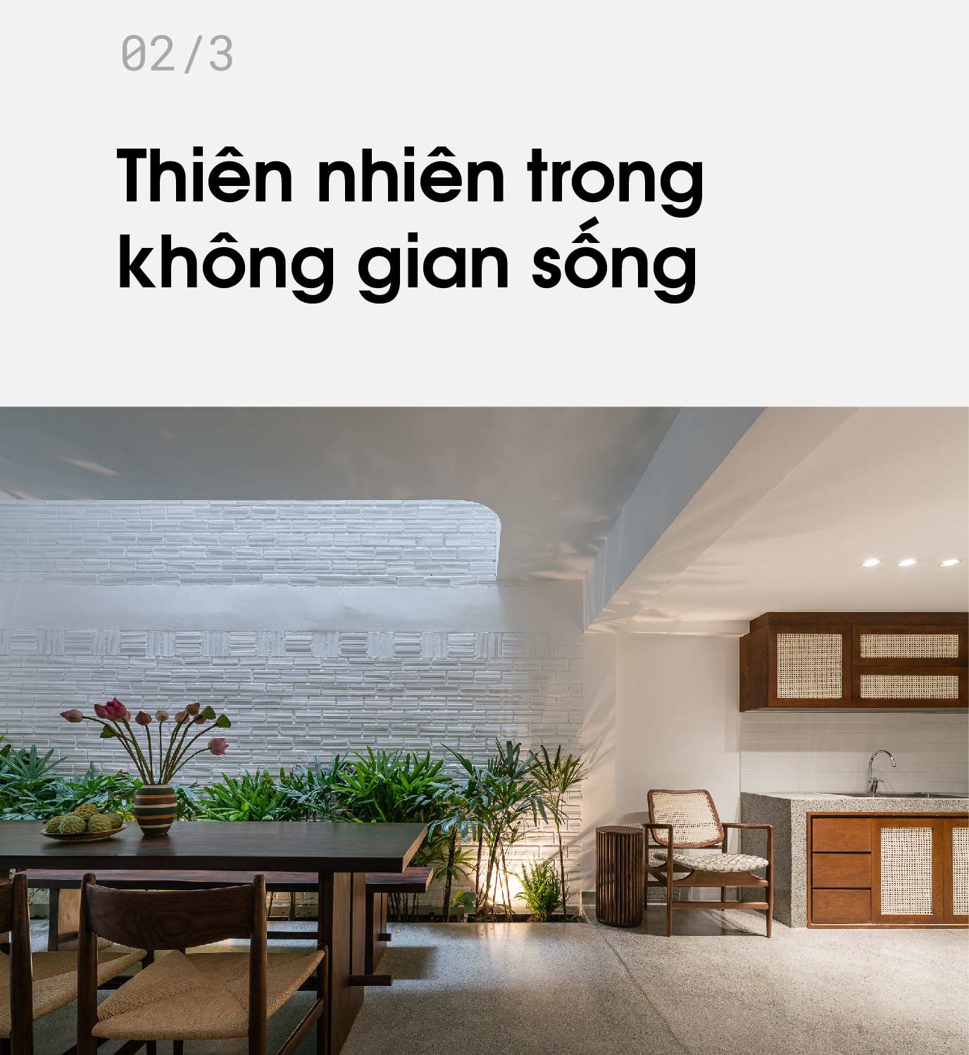 Một trong những yêu cầu khác của chủ nhà là tạo nên những mảng xanh trong không gian. Cây xanh tồn tại và mang lại giá trị cốt lõi cho công trình.