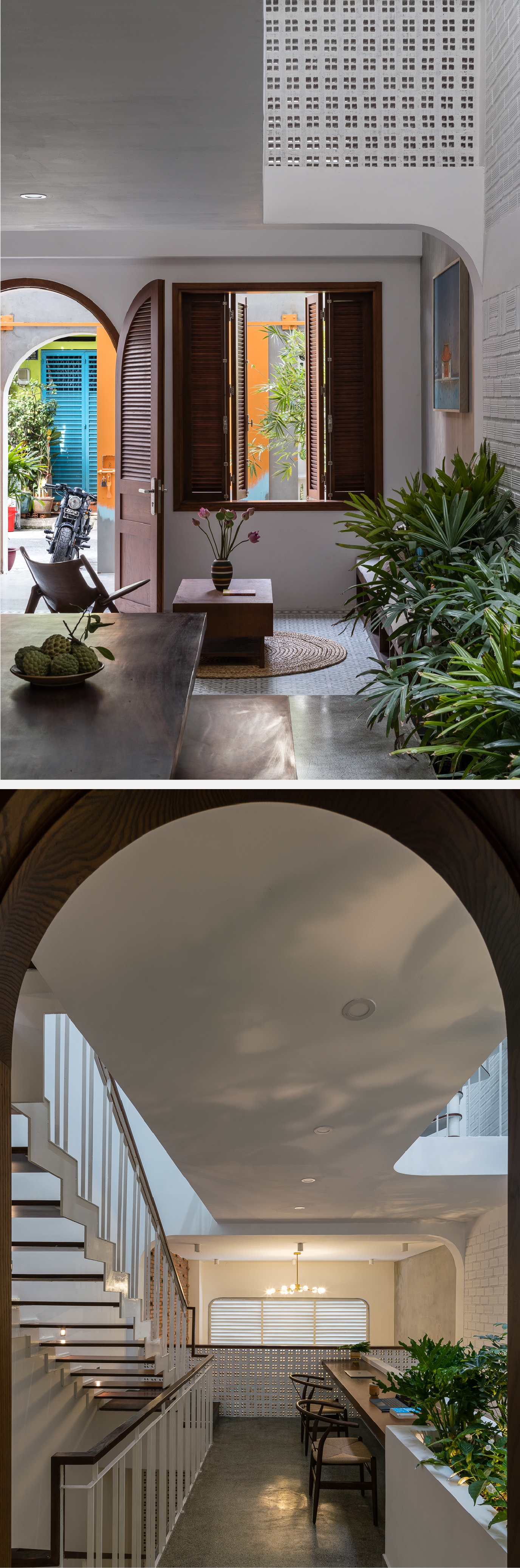 Hệ thống các cổng vòm trong nhà cũng là một điểm nhấn đặc biệt của thiết kế. Cấu trúc này tạo nên sự mới mẻ và độc đáo.