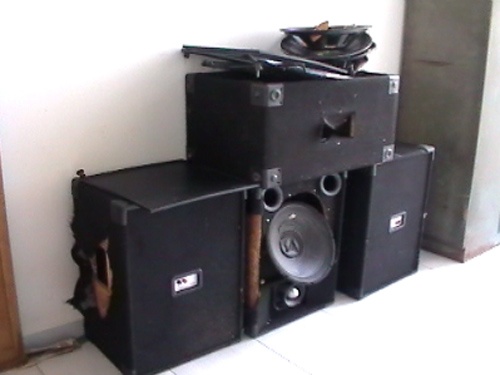 | Bốn thùng loa chứa xăng và thuốc nổ. |