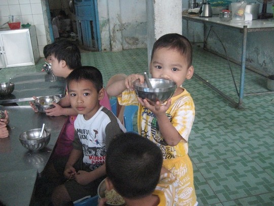 Tại Trung tâm Công tác xã hội TP.Cần Thơ (trước đây là Trung tâm Nuôi dạy Trẻ mồ côi TP Cần Thơ), ngày đầu năm mới cũng đầy ắp tiếng cười của hơn 30 trẻ mồ côi. Đúng 8 giờ sáng, tất cả các cháu được 2 cô giáo đưa xuống bếp ăn để ăn sáng trong tiếng nói cười rộn rã, dù món ăn chỉ là những tô mì gói còn nghi ngút khói.