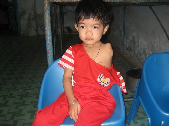 Bé Lương Thế Anh (8 tuổi), gương mặt bị ảnh hưởng bởi chất độc da cam, tỏ ra thích thú: “Tết vui lắm chú ạ!”. Nói xong, Thế Anh cặm cụi thưởng thức tô mì gói một cách ngon lành.