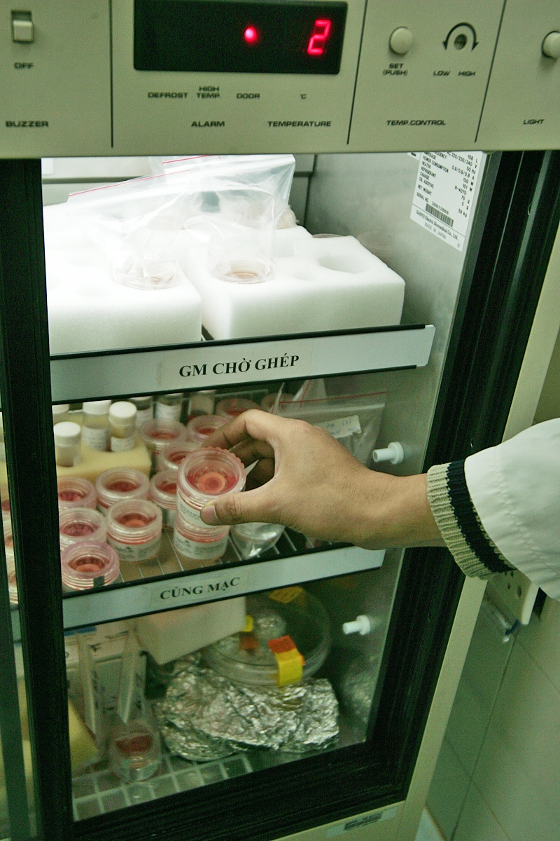 | Hình ảnh tại bệnh viện mắt Trung ương (Hà Nội). Tủ bảo ôn bảo quản giác mạc trước khi sử dụng cấy ghép cho các bênh nhân. Giác mạc như lớp kính trong suốt đón ánh sáng bên ngoài vào, giúp con người có thể nhìn thấy được mọi thứ. |