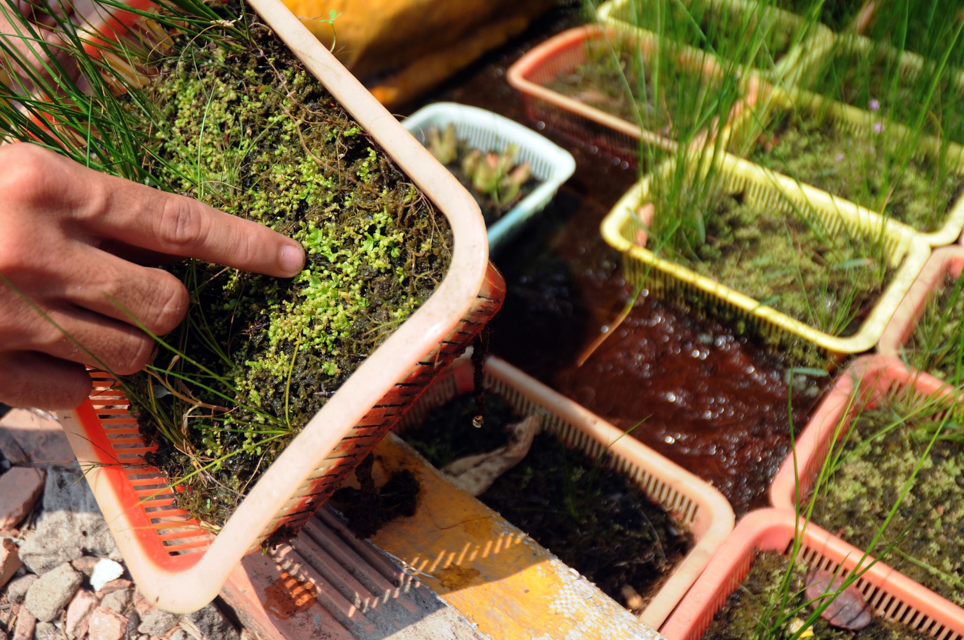 | Trong vựa cây kiểng của anh Phương, ngoài cây nắp ấm ra còn có cây gọng vó, cây hố bẫy... cũng là loài chuyên bắt côn trùng làm thức ăn. |