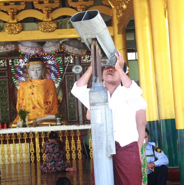 Có kính viễn vọng để người đến viếng cảnh chùa có thể nhìn tận đỉnh tháp.