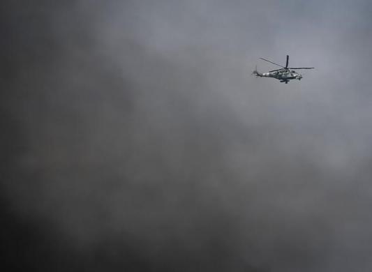 | Máy bay của Ukraina lượn phía trên chốt an ninh ở gần thị trấn Slaviansk vào ngày 24/4. |