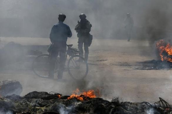 | Khung cảnh giống như bãi chiến trường tại một chốt an ninh sau cuộc giao tranh giữa quân đội Ukraina và những người ly khai. |