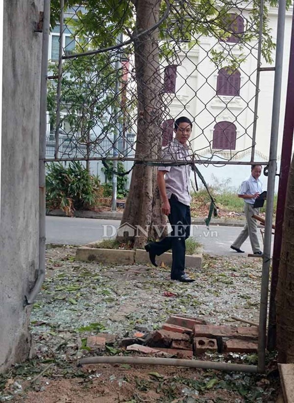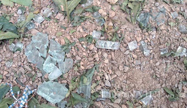 | Kính văng tung tóe khắp khu vực trước cửa nhà. |
