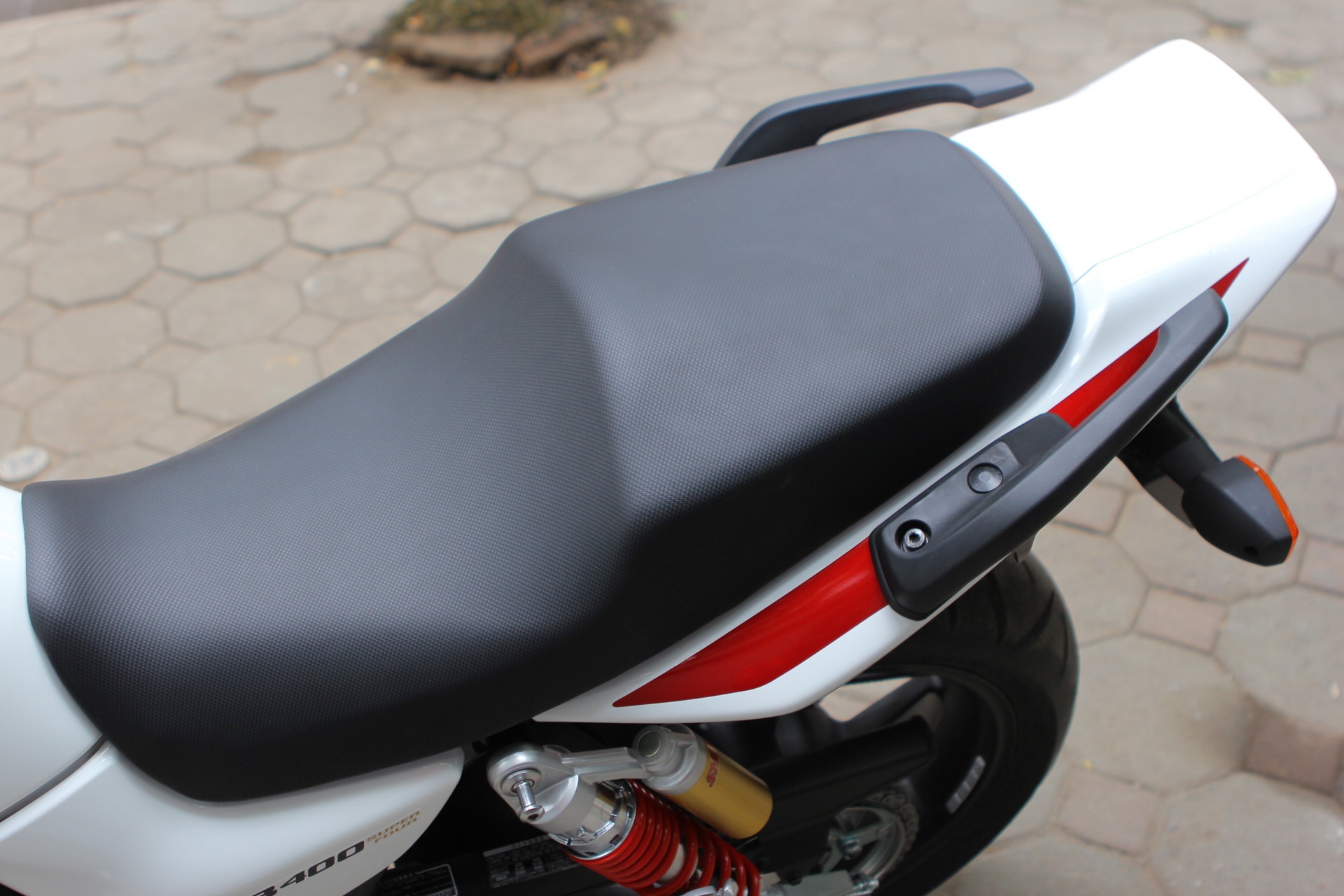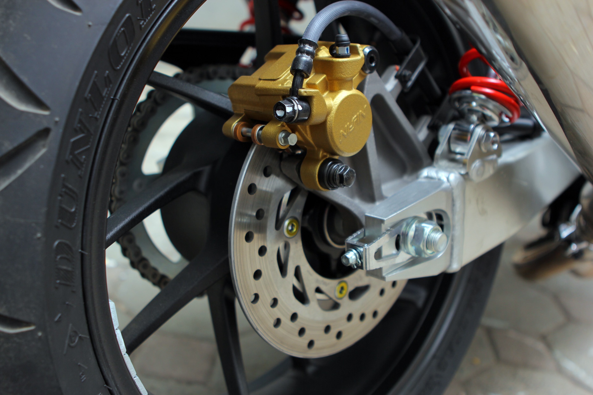 | Phía sau được trang bị giảm xóc thủy lực, lò xo hành trình 105 mm. Lốp sau kích thước 160/60/17 |