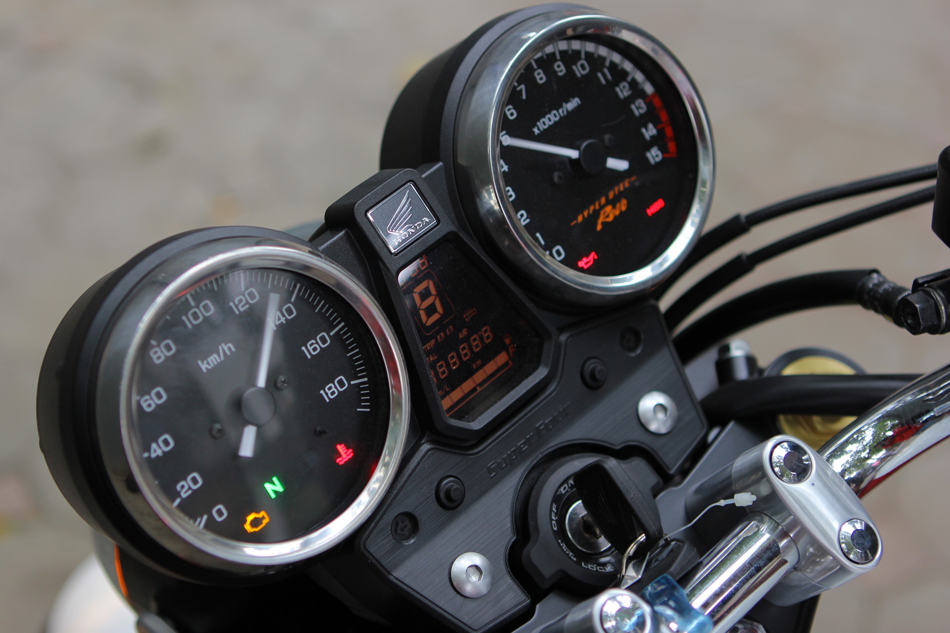 | Cụm đồng hồ trên CB400 Super Four được tích hợp cả dạng analog và điện tử, vừa mang nét cổ điển, vừa hiện đại. |