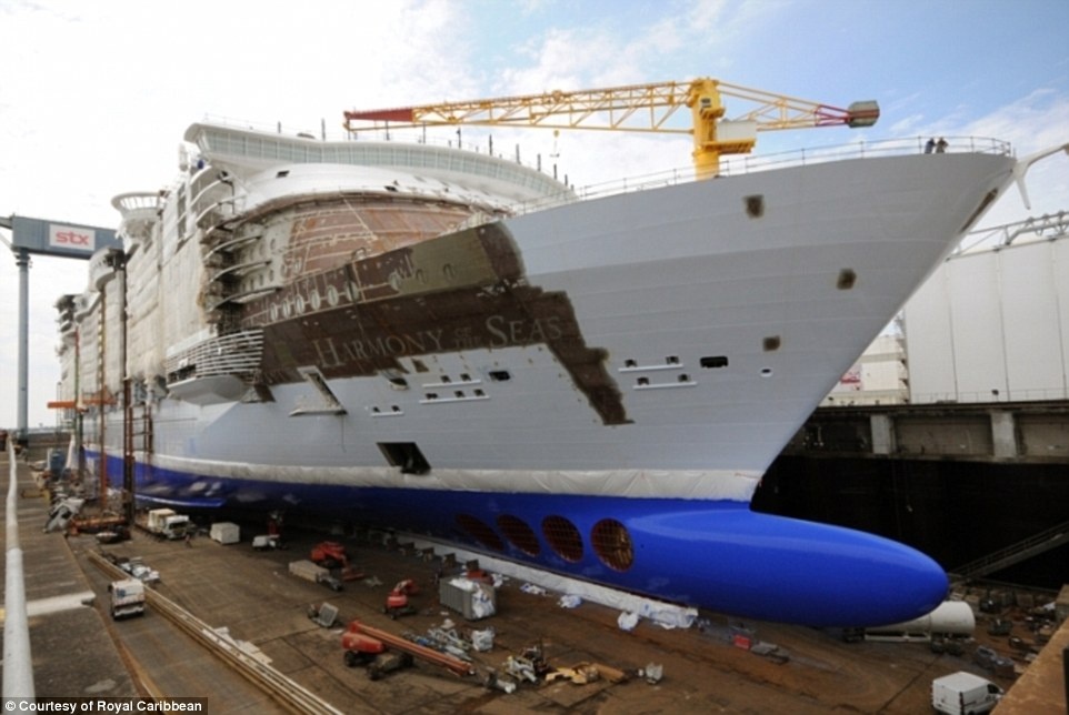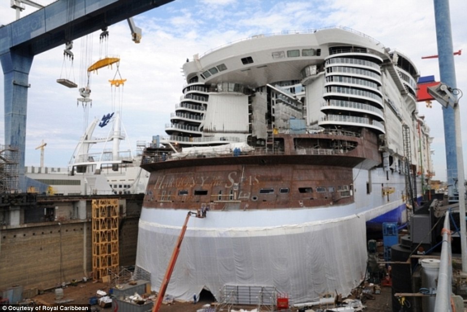 Hình ảnh Harmony khi quá trình lắp ráp hoàn tất. Sau thành công của 3 du thuyền siêu sang, công ty Royal Caribbean đang đóng sản phẩm lớp Oasis thứ 4 tại Pháp. Theo kế hoạch, tàu sẽ xuất xưởng vào năm 2018. Ảnh: Travelweekly