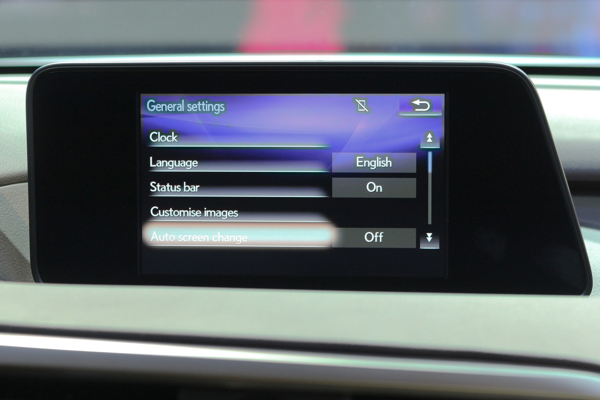 | Màn hình hiển thị dạng đứng thường thấy trên những mẫu Lexus trong thời gian gần đây. Người lái xe có thể điều chỉnh các tuỳ chọn thông qua một cần gạt đặt gần hộp số. |