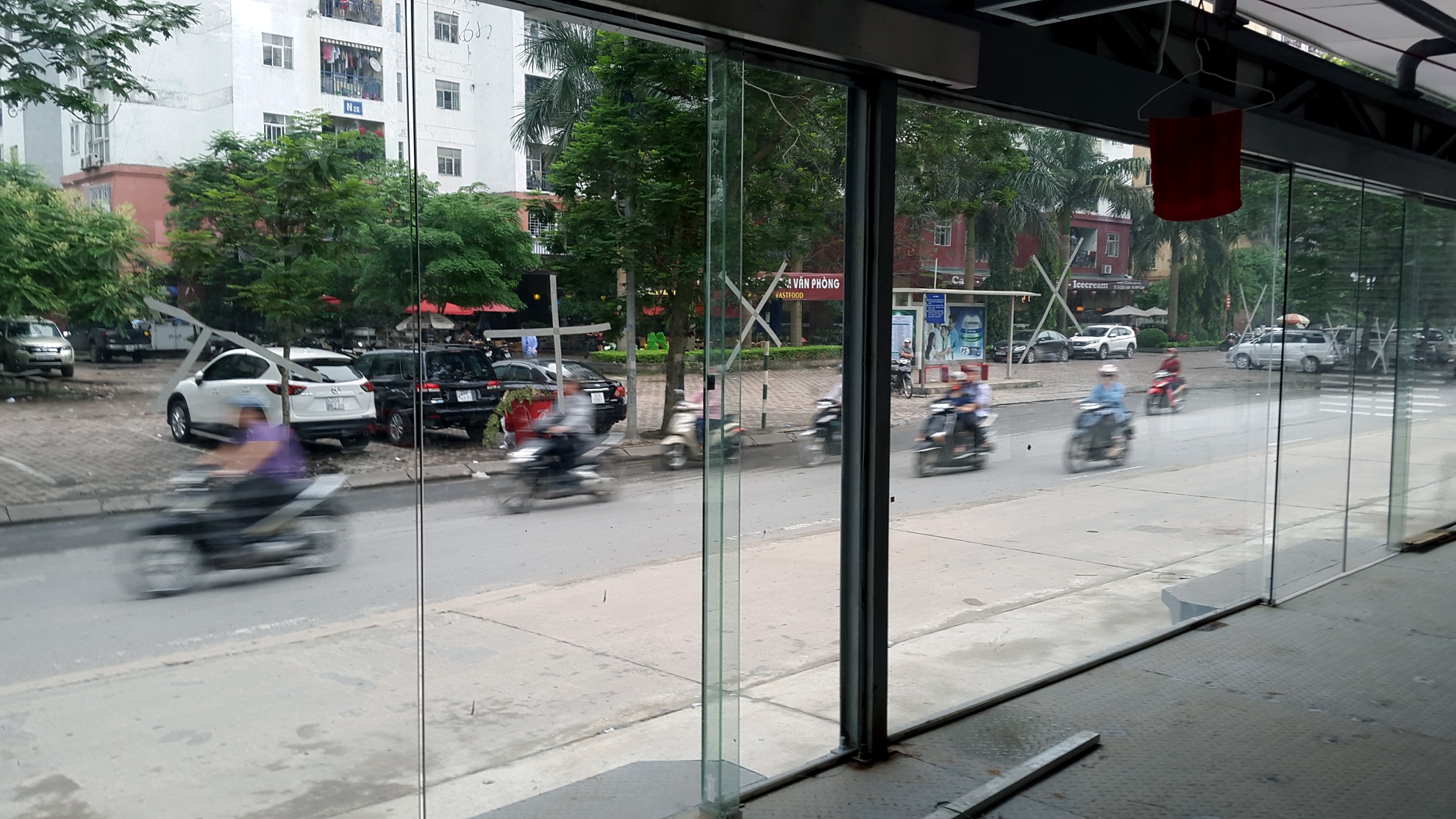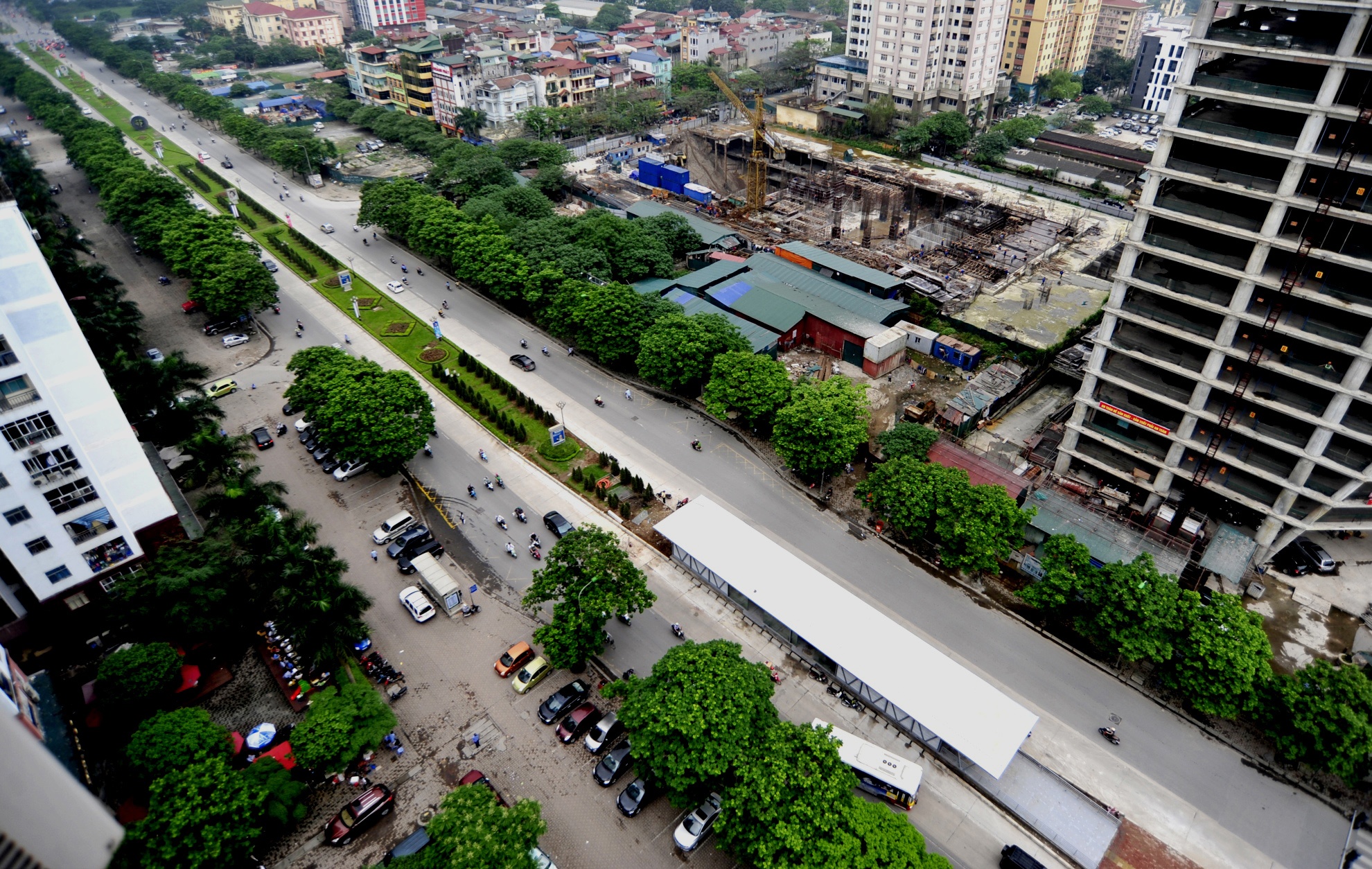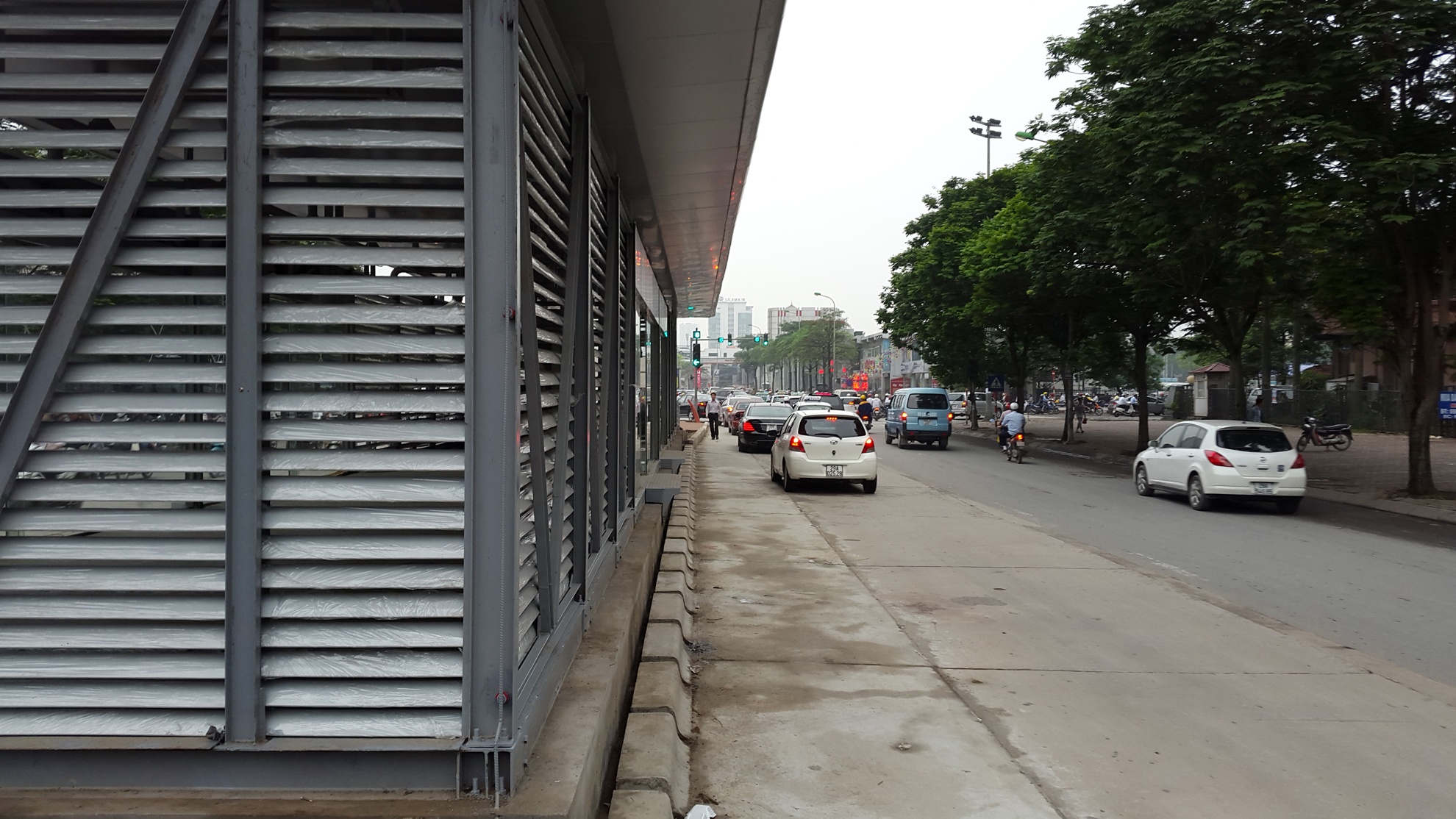 Nhà chờ xe buýt "5 sao" nhìn từ trên cao trên tuyến đường Lê Văn Lương. Tốc độ khai thác dự kiến của tuyến Hanoi BRT vào khoảng 22-25 km/h.