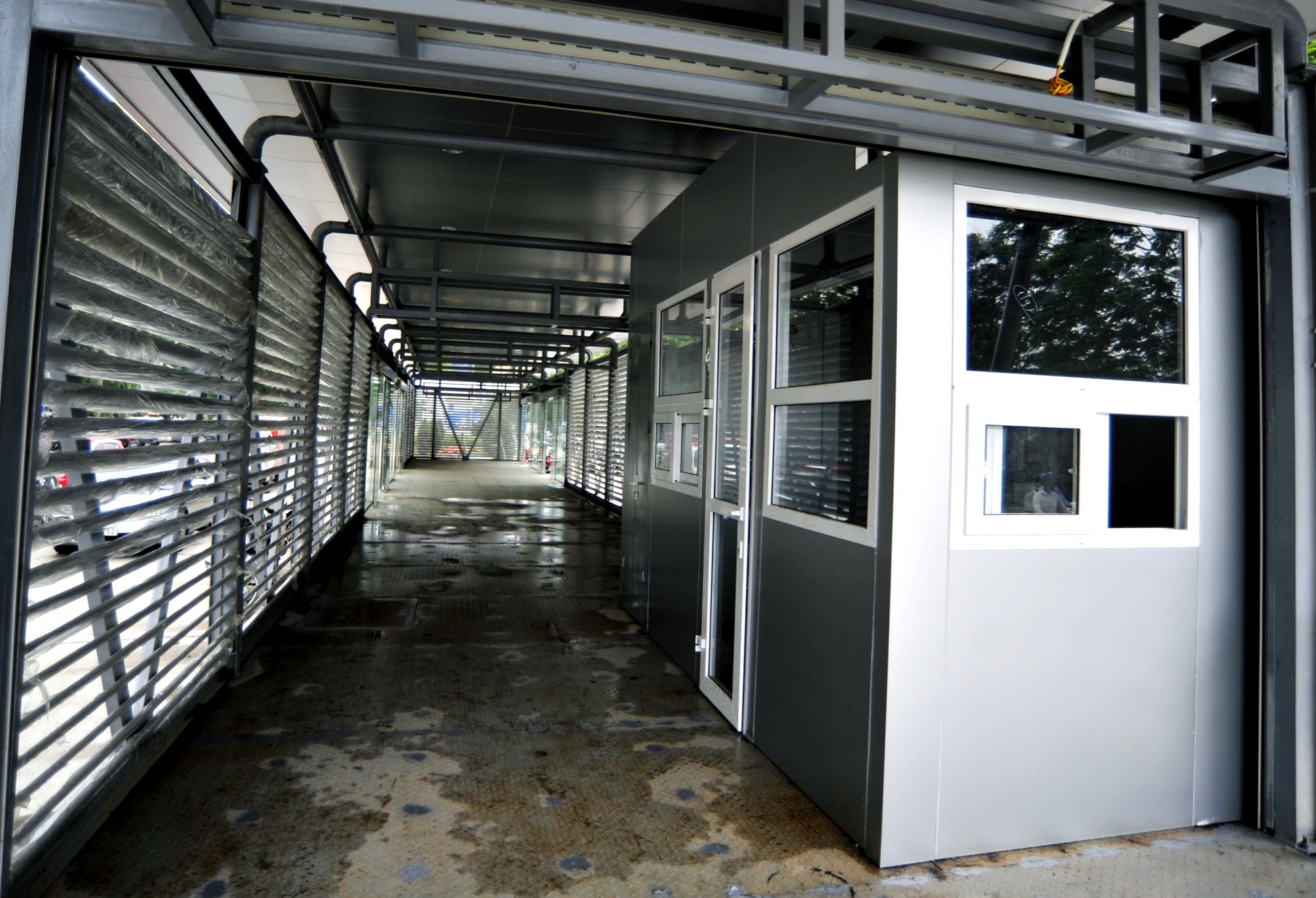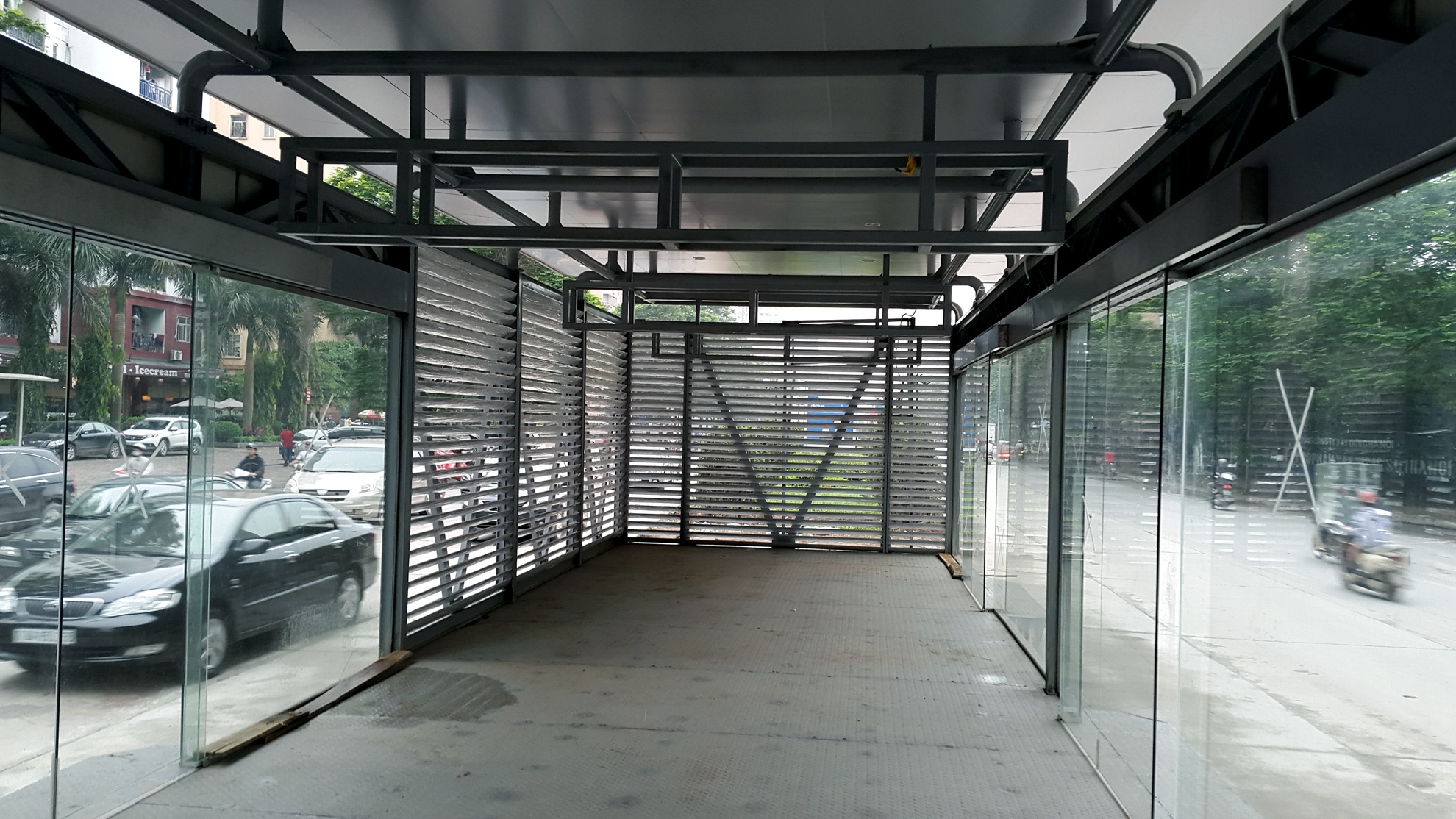 Cửa từ nhà chờ bước lên xe buýt là hệ thống kính trượt đóng mở tự động. Chỉ khi xe buýt cập bến cửa trượt mới tự động mở để giữ an toàn và tạo thói quen xếp hàng trật tự khi vào xe.